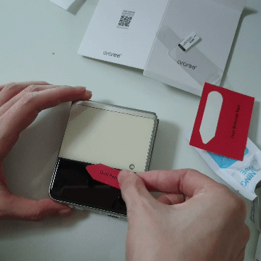 손잡이를 양손으로 잡고 화면에맞게 붙여준다